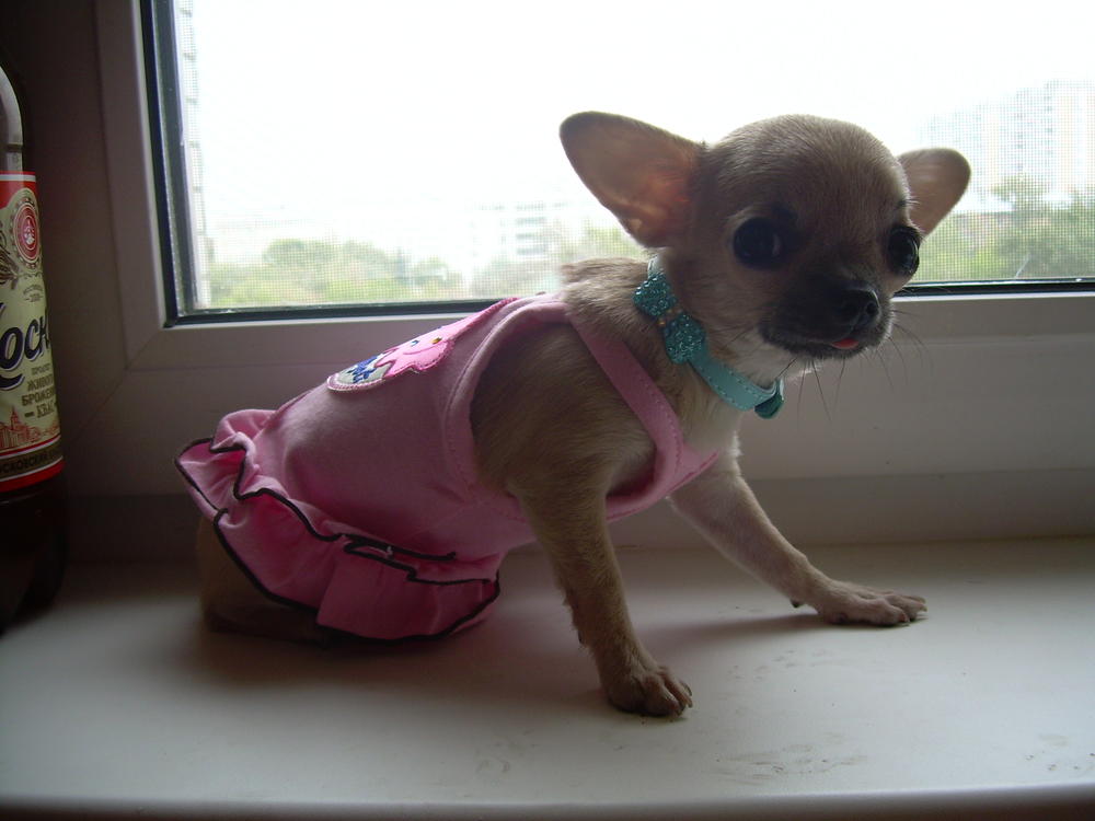 В розовоп платьице и ошейнике с бантиком - настоящая модница!!!