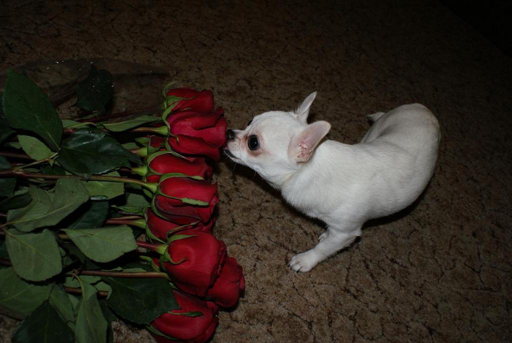 Здравствуйте Анюта и Виктор, у Вильяма тоже есть рыжие отметины, одно ушко у него полностью рыжее, а на втором несколько пятнышек. У него мама полностью белая, а папа рыжий, так и взяли от папа несколько пятнышек, для разнообразия:wink:
