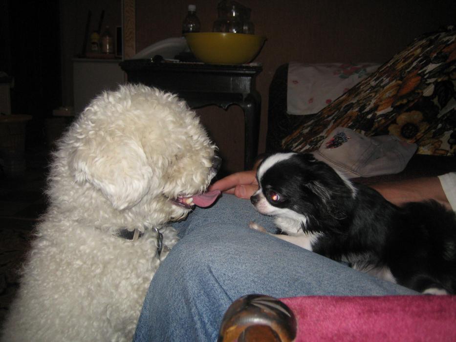 На фото с болонкой супер просто!!! Такая моська грозная у нее!!! Как будто вот-вот и она вцепится зубенками болонке в нос!)))) Как у вас с зубками дела кстати? :smile: