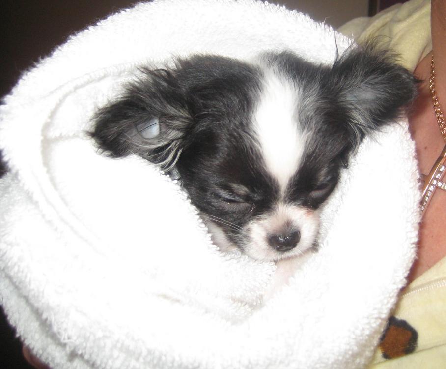 Ну,а когда я ее завернула в теплое,нагретое полотенце,то Лялька прибалдела и заснула....