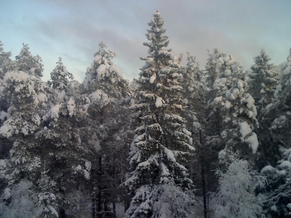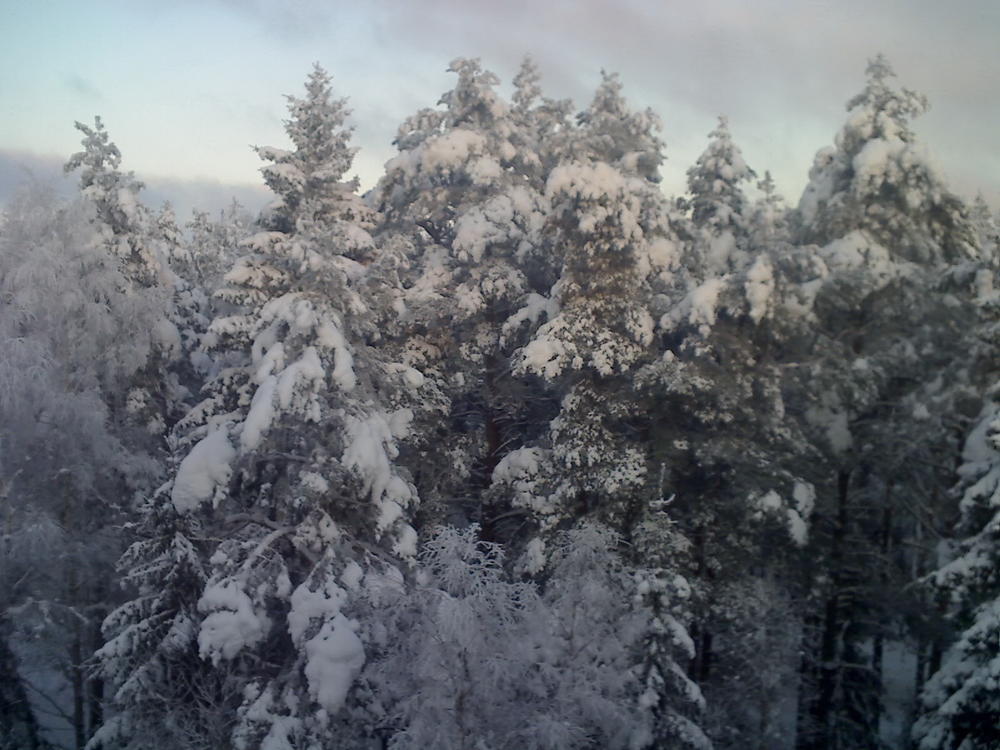 И вот выкладываю фоточки. Одна Умка с Хомой (это кошка), а другие - наш вид из окна! Живем мы не в лесу