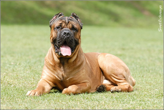 Это наши "родственники"-кане-корсо))) они живут у моих родителей. С виду серьезные ребята, а на самом деле-такие плюшки. Рыженького зовут Берг - добрейшей души человек, а черного зовут Бернар, сын Берга, хоть и взрослый уже, но все равно продолжает чувствовать себя щенком, периодически к папе на ручки просится:laughing: