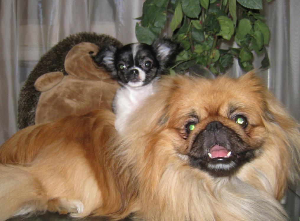 Особенно мне понравилась фотка,где Боня на пекинесе гордо сидит и голову вверх подняла...Супер!