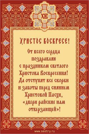 Grace Эксперт по породе чихуахауа Сообщения 2.249 Город Москва 04 Апр 2010 в 12:50 #299 Re: Боня ХРИСТОС ВОСКРЕСЕ! Вложения Чихуахуа (1256297874_98_congratulations.jpg) 3,6 KB · Просмотры: 95