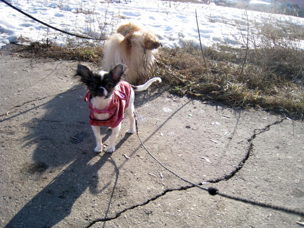 Re: Боня На выходных ходили гулять, Бонька трусиха, всего боялась, только когда Чип рядом шел она чувствовала себя более уверенно)))). От прохожих услышали кучу комплементов, муж прям возгордился!!! Вот наш фотоочет....