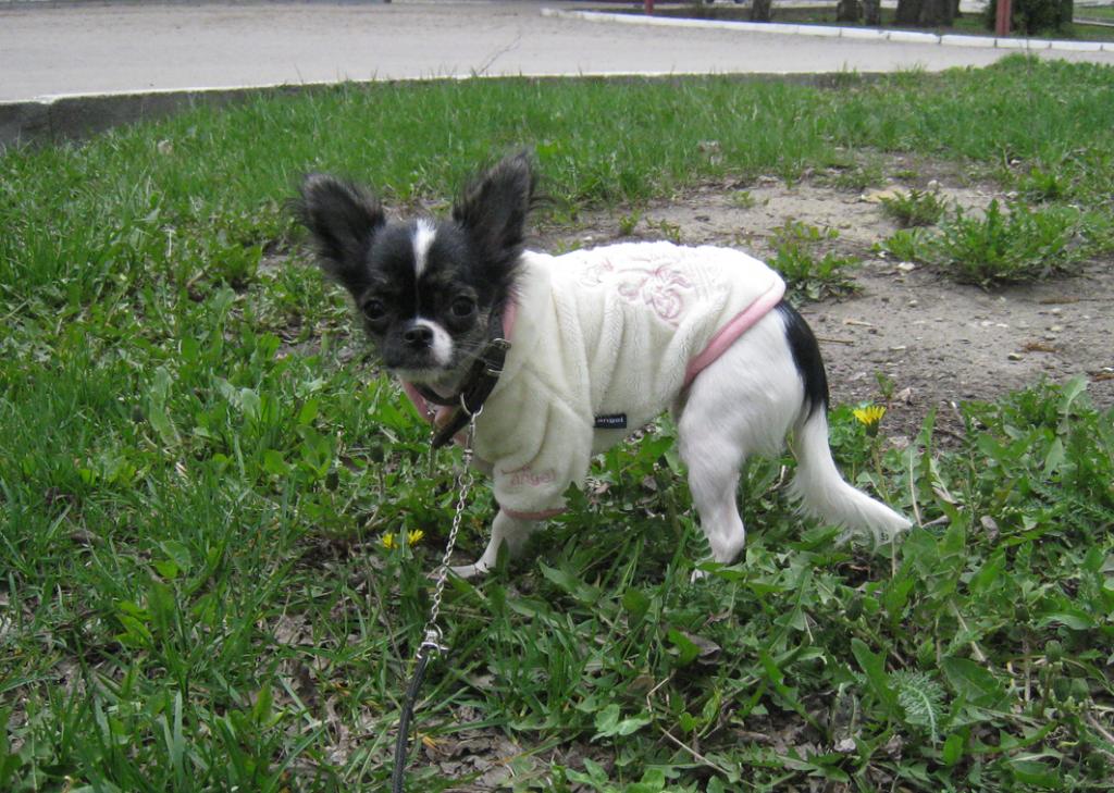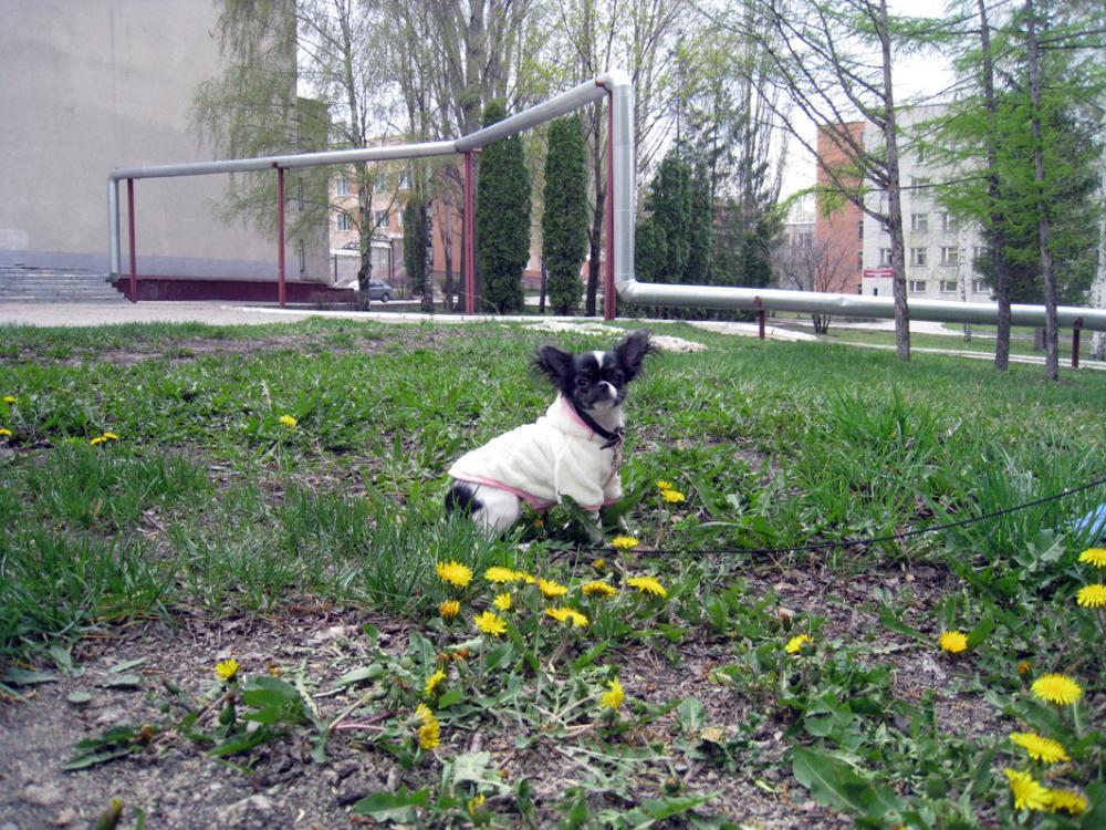 А Бонька у нас трусишка, всего боиться((((. Выходим на улицу она вся трясется, на землю опускаю, успокаивается, начинает все обнюхивать, на поводке идет хорошо, но только на встречу нам кто-нибудь попадается, все...., встает как вкопанная, с места ее не сдвинешь:flushed: