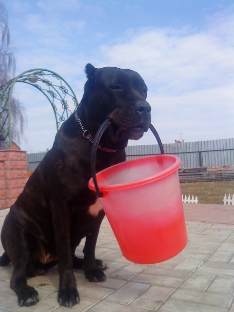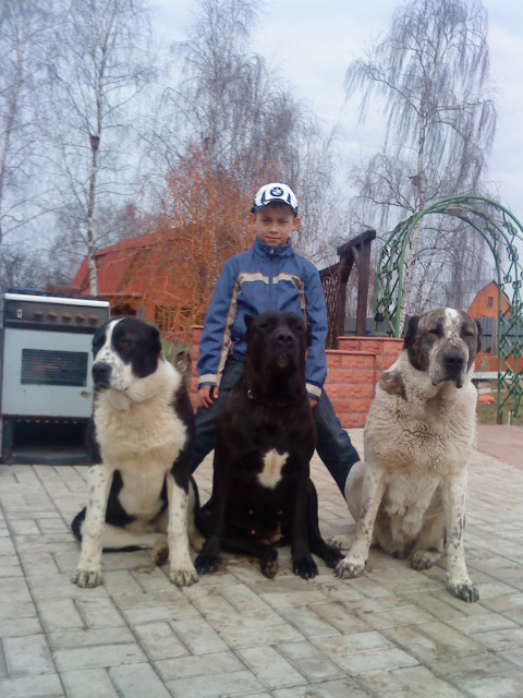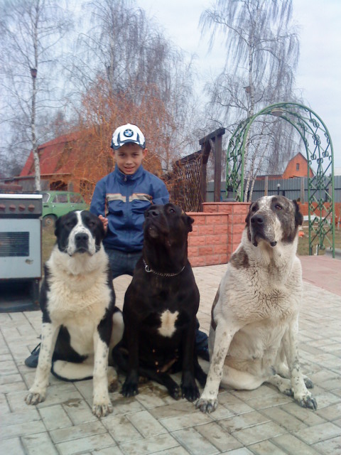 Здорово! Такие большущие и классные собаки! И сынуля (правильно, я понимаю?) такой гордый! А собачка с ведром такая хозяйственная!