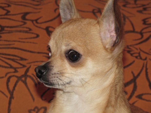 Чихуа мальчик Понтиак Миучи Миро 2,5 года. Любит поесть, обожает жару - может долго греться на солнцепёке или под одеялом( чем он там дышит, известно только ему). Не любит других собак, кроме тех, кто с ним живёт. Любит людей.