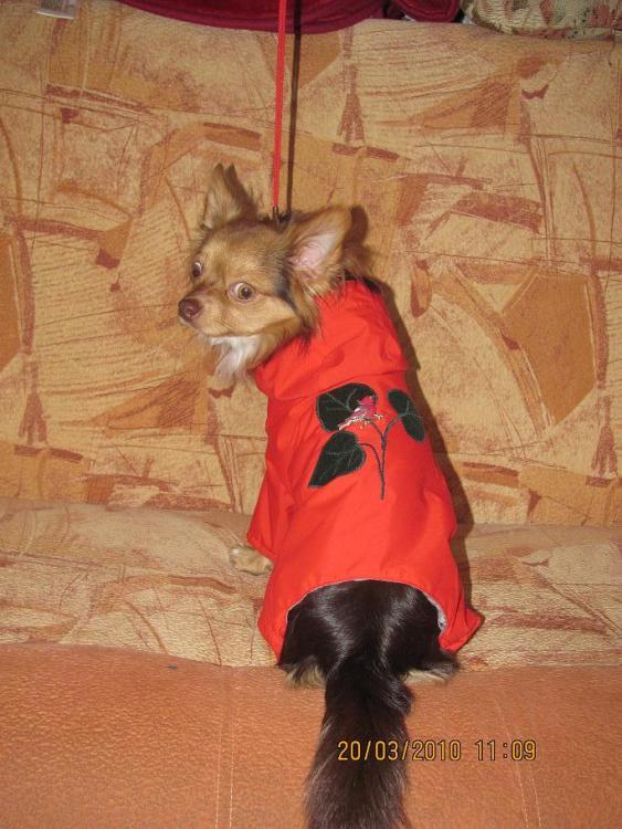 Как красиво, ему бы еще красную кепочку и можно под дождиком гулять. Потресающе сшито, у меня так аккуратно не получалось:sm496:, я для своего любимого( погибшего.:flushed:) Тойтерьера тоже шила комбезы