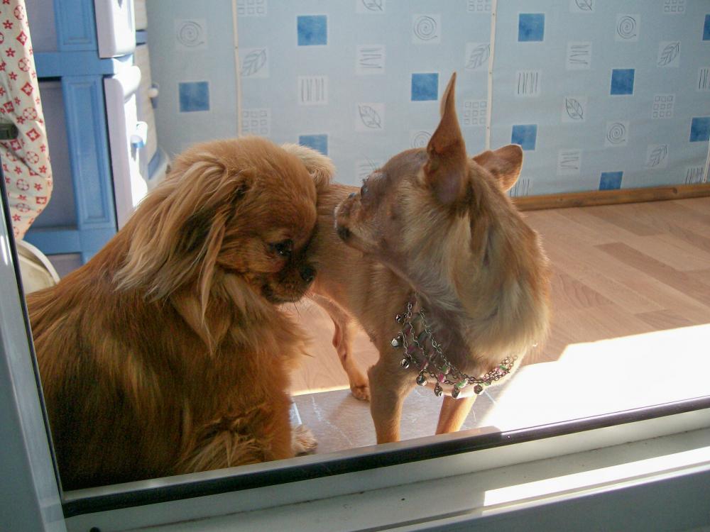 Только что концерт был. Пришла ко мне Джулька и голосом зовет(она,кстати,постоянно разговаривает), я за ней, она говорит, смотрит, чтоб я за ней шла, привела меня в спальню, к своему домику, залезла и стала рычать. Вот так она показала мне, что у нее есть свое жилье, и мне там не место. Ну и козявка, это же надо!!!