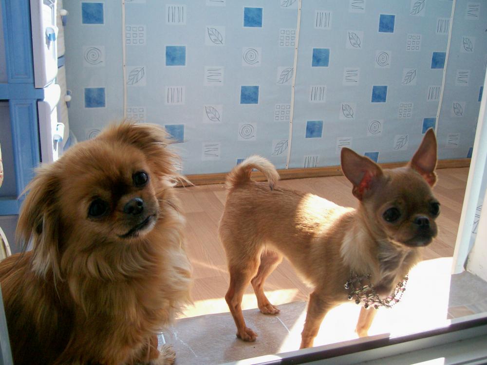 Вот новые фотки. Джуля в новом домике, дети на балконе, Джуля пристает с поцелуйками к Джеське, она игнорирует. Ну и специально для Светы показываю, что за фото на рабочем столе ноутбука. Каждый день смотрю и балдею!!!