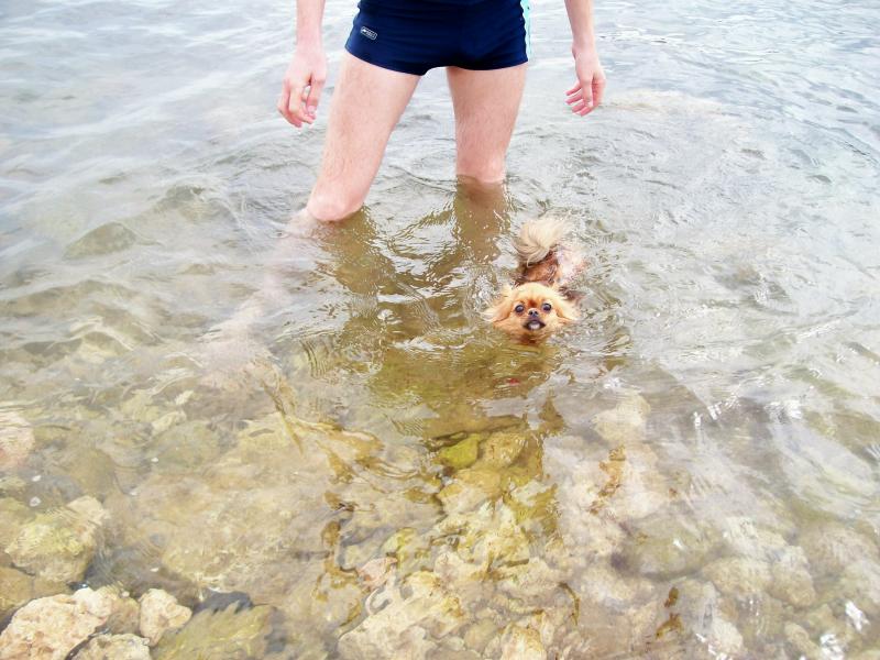 Джуля уже плавала увереннее,чем в первый раз, так что скорее всего она полюбит купание в море, ведь ванную она обожает.