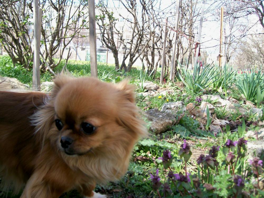Красотища какая!Цветочки,собики голые!А я вчера Мэгги как всегда запазухой несла со стоянки домой,солнышко греет,ветра нет,тепло уже,весной пахнет...Ну я и растегнула куртку,чтобы головка торчала и она вокруг посмотрела-воздухом подышала,так моя принцесса на горошине минуты 3 выдержала-потом замёрзла,затряслась,стала зарываться поглубже-ЗАМЁРЗЛА!Не понимаю,как какие-то героические чиши по снегу ходят,и даже не одетые я видела гуляют!А у меня даже Фикеша зимой ни-ни,и ветра очень боялась,Санька вообще в обморочном состоянии 2 мин на снегу постояла-потом два дня на меня дулась...