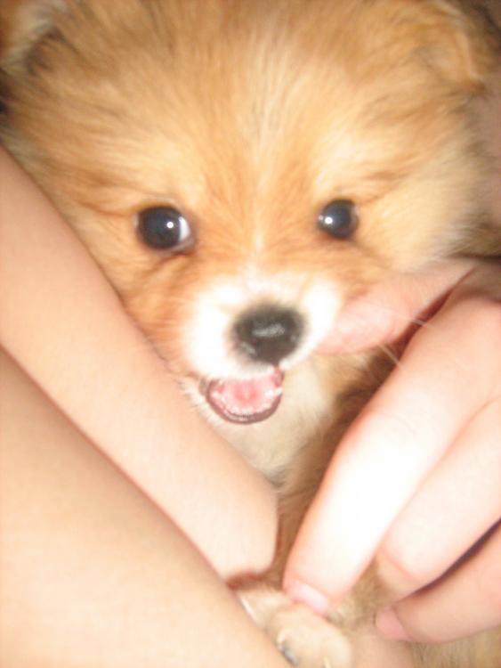 Ой, прям как маленький медвежонок!!!! Может я и ошибаюсь, но мне кажется, что на шпица очень похожа))). Откуда ваша девочка?