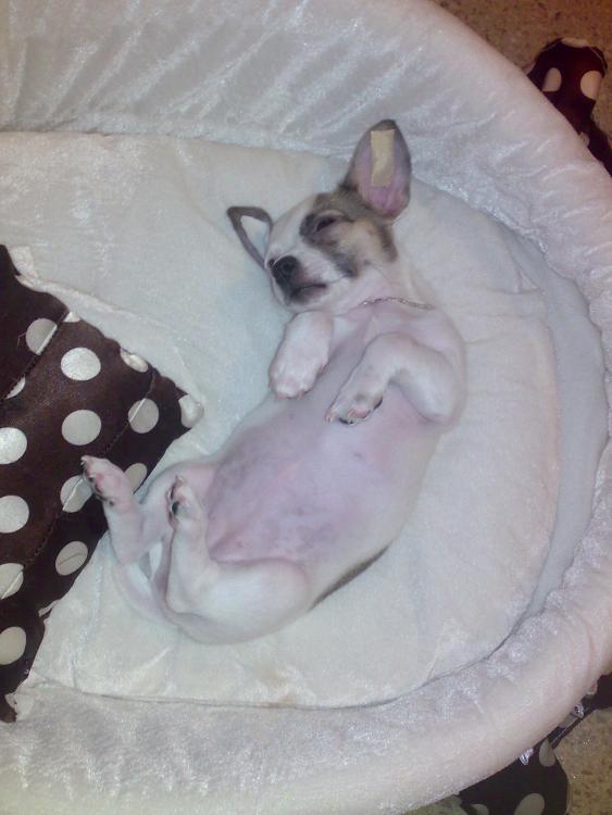 Первые несколько ночей спали плохо, скулила.Я спускала руку в ее лежаночку и только так мы засыпаем. Сейчас освоилась, активная, рычит и даже пытается лаить. Всегда встречает, любит целоваться я ее ОБОЖАЮ.:kissing1: