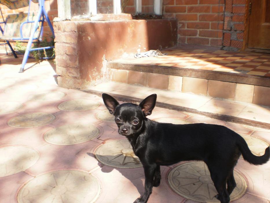 На улице тоже пытается на него рычать,пока ботся его.И Зара его боится ,запрыгивает повыше и косится на него))))