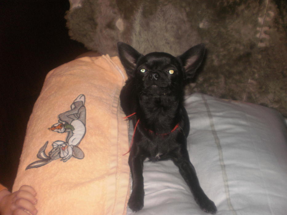 Такая моська довольная,как мама,та тоже не любит фоткатся,глаза всё время закрывает.![]()