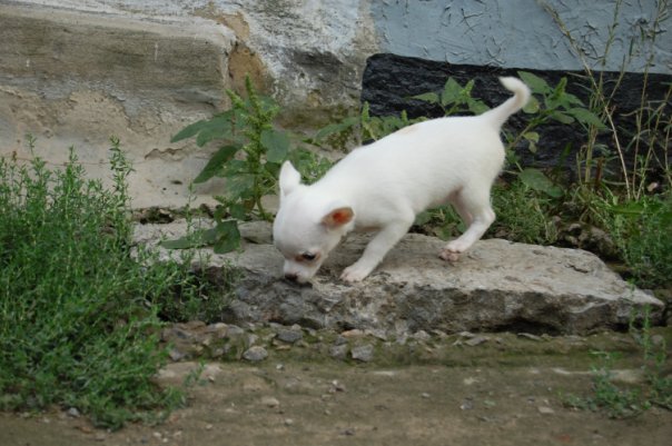 очень красивая девочка!!!мне кажется что даже чем то похожи с моей, только она голубо-полевая,я вот не могу понять по фото какого она окраса ,полностью беленькая???интересно бы посмотреть на нее еще щеночком,если есть фотки покажите .