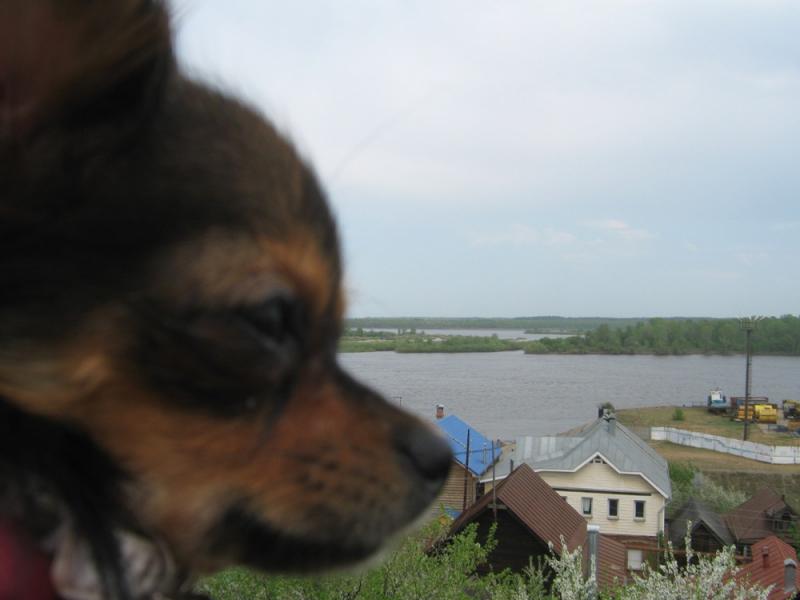 Вот ещё несколько фоточек, из деревни. На 1-Бониттка только приехала в деревню. На 2- мечтательно смотрит на Волгу. На 3- учимся по пластонски. :smile:
