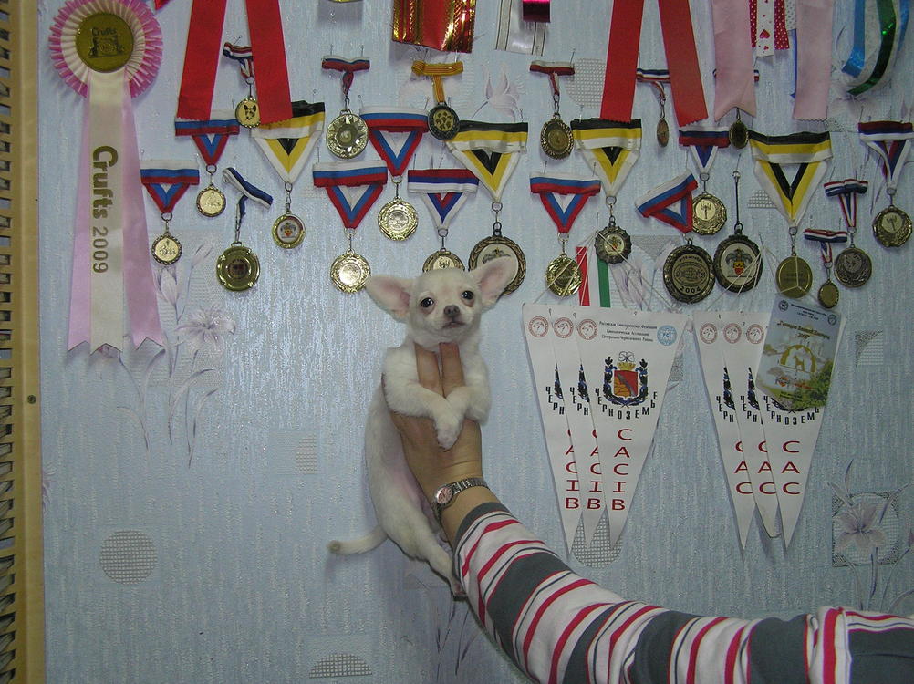 Чтоб что-то конкретное сказать - надо фото в стойке.... а так - чихуа,вроде белая....