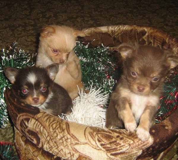 Скажите пожалуйста это Чихи? Меня смущает цвет носиков,по моему где-читала что они должны быть исключительно черного цвета, еще смущают размер лап-для 2,5 мес. возраста не болшеваты?Извините что обременяю хочу научиться отличать))))...(могу очень сильно ошибаться)... фото не моё, взято с mail.ru.