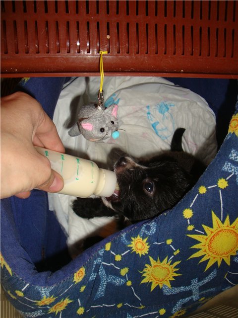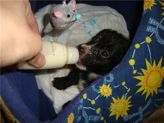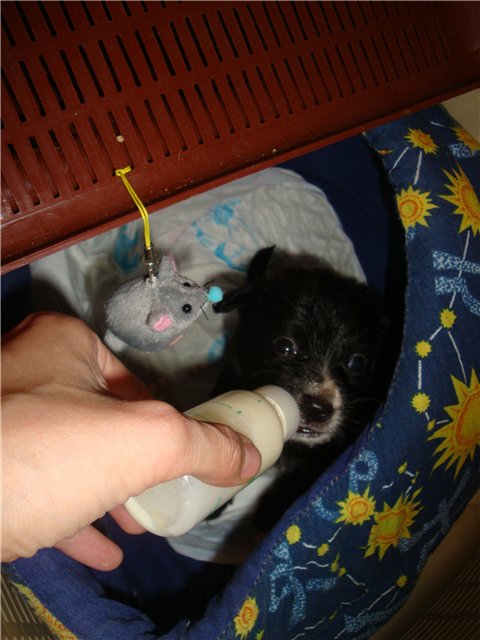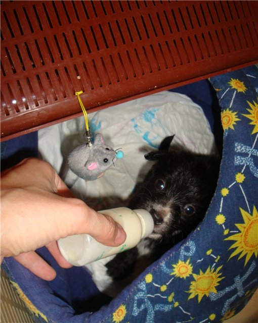 а щену на фотке сколько? Мы своего подобрали в 1,5 месяца, он был по весу не больше 1 кг... по размеру был чуть больше ладошки... это фото уже более поздняя...