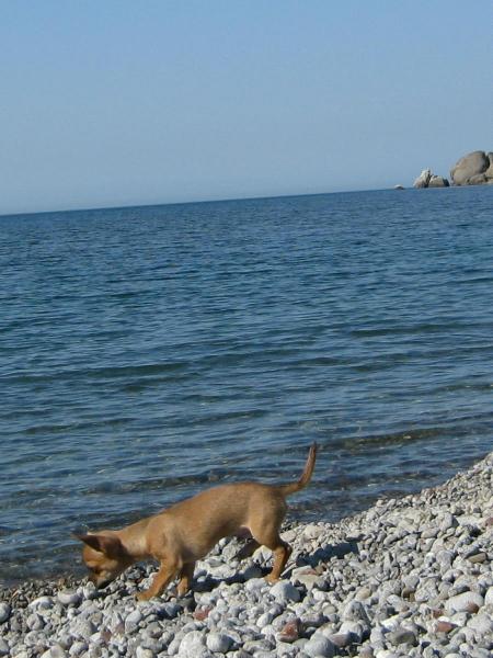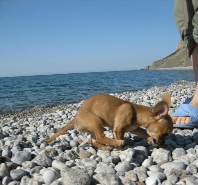 Порше очень понравилось играть с камешками и мне он один подарил. На нем оказалась написана буква А, вот такой случай!