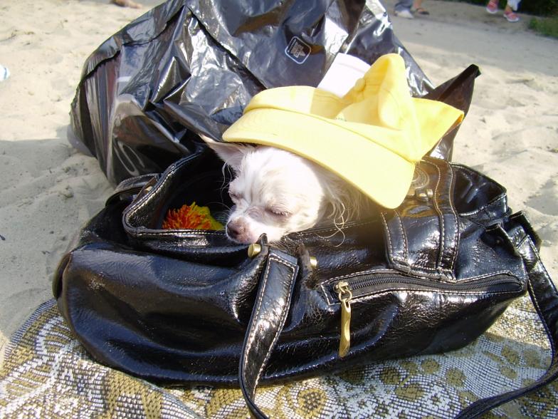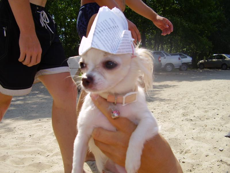 Вот хотим представить вашему вниманию ещё одну фотосессию, но только на пляже. Лерочка впервые вышла на пляж, так ей понравилось купаться, загорать, всех от своего места отгоняла и даже лаяла. Вела себя просто молодец, как будто ее этому учили. Наверное, это в крови. Я знала, что она умненькая девочка, но чтобы до такого-только убедилась. Вот наши новые фотки на пляже и рассказ от Лериного лица :"Пошли мы с папой и мамой на пляж. Я ещё не знала, что это такое, но так хотела, так хотела с ними. Пришли. Папа мне смастрячил сразу кепку. Да какую... Она мне правда, очень к лицу?!Потом пошла купаться. Мама меня деражала, все боялась, что я утону, а мне так понравилось плавать, что я и сама лучше умею, чем с ее поддержкой.Я так отдохнула, что потом захотелось спать, легла в мамину сумку и давай спать. Дома меня мопс обо всем расспрашивала, я все рассказала и мы вместе счастливо заснули. Вот так я провела день!"