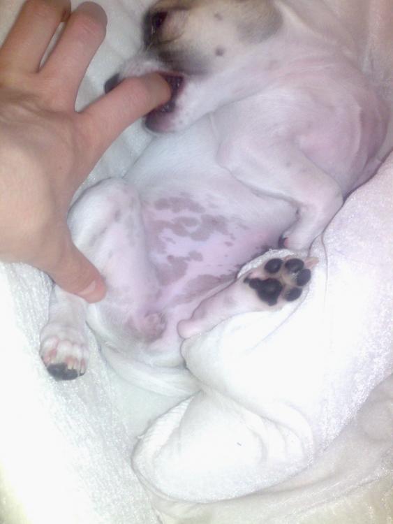 Вот фото,может не очень удачные,но где шерсть раздвинута видно.