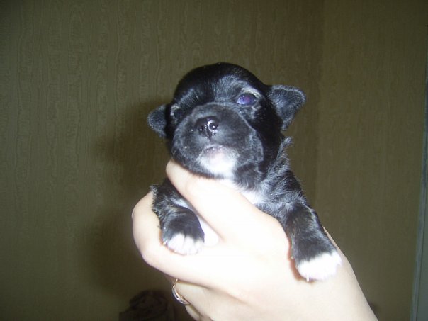 Вот например, фотки якобы чёрного при рождении щенка нескольких дней от роду, потом в 2,5 недели и почти в 2 месяца:wink: