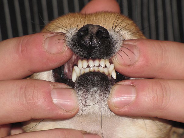 Zabava-VA передние зубы долго не приобретают камень и налет, проверти внимательней задние зубки у малыша. Приведу к примеру свою старшенькую Юкиню: мы в 8 месяце удалили 6 молочных зубов, (сейчас нам полтора года) и где-то с декабря, января стал заметен резкий не приятный запах! Я полезла к ней в рот на экспедицию, что же так может вонять у такой молоденькой малявки! Зубы портятся и приобретают камень с налетом где-то от 3до 5 лет и собачку можно сводить на профессиональную чистку зубов к ветеринару) и собачки комфортней без камня и запаху нет)! Так и вот полезла я к ней в рот и что вижу на задних верхних зубах камень((( и два зуба по обеим сторонам шатаются((( я в шоке в страхе как такое может быть в столь раннем возрасте, записались к ветеринару… и оказывается что это хорошо спрятавшиеся в свое время молочные зубы… и того в сумме со старыми зубами нам удалили 8 молочных зубов(! И вот уже как неделю нем удалили последние молочные зубы почистили зубки и запаха как не бывало!!!