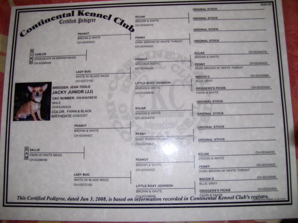 из Штатов собачка... Там никто особо всем этим не заморачивается... Животных и из приюта берут , и метисов.... но 2 тыс дол на собаку...там тратить не будут.... достаточно обеспеченные люди... А купила мне дочка... она тоже ничего в этом особо не понимала.. И заводчица там есть , и клуб --Континенталь Кеннел Клаб... Ну я сфоткала.... Но все равно же здесь ничего не видно!! А как сделать фотографию большой , я не знаю.!!! Кстати , когда я бываю в Штатах...то там у людей не возникает вопрос: кто это? у них много ..ха-ха-ха таких чихуахуа...chih&toy написал(а):Джей-Джей