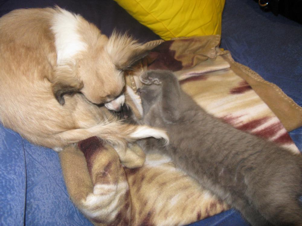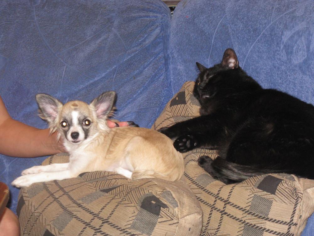 Черный кот Мася. Тут они вместе спят. Ох уж, эти мужики. Даже кот мальчик, положил свою лапу на собаченку девочку=))))))):tearsofjoy::tearsofjoy: