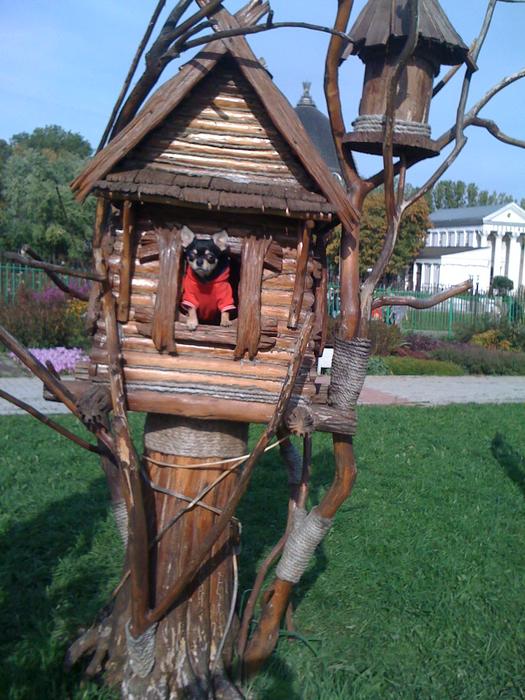 Нашли Масяше деревянный теремок и чуть не подрались с кошками))