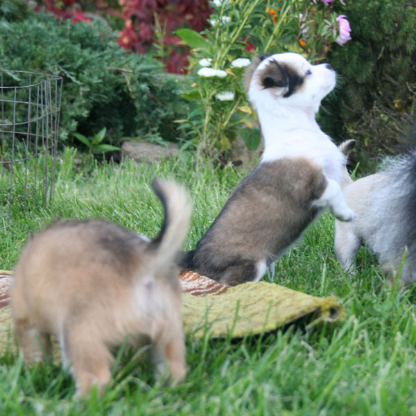 Ездили на дачу, деток выпустили на травку побегать, они как кролики прыгали и травку грызли )) им очень понравилось, жалко что не долго длилось их удовольствие, земля уже холодная, поэтому после прогулки мы устроились около печки и там продолжили наши игры!