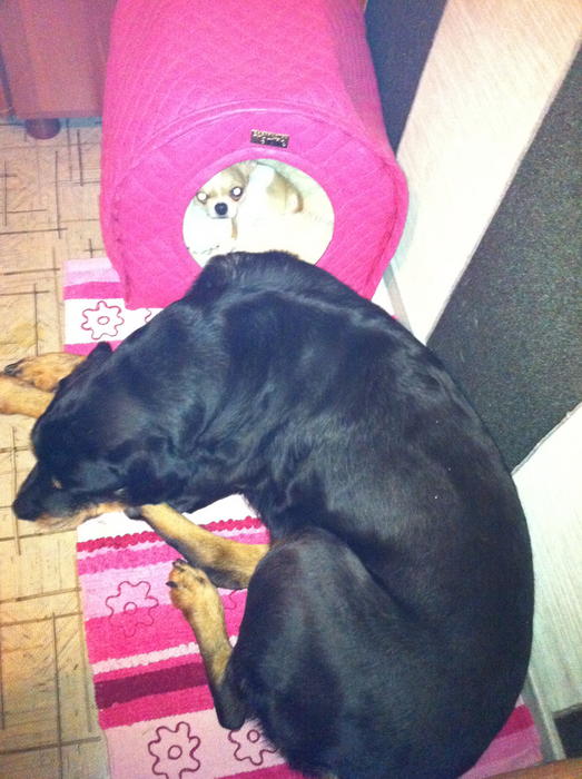 РОТВЕЙЛЕРША ТО ЛИ СОН ЕГО ОХРАНЯЕТ, ТО ЛИ "ЛИЧНОМУ ДОМИКУ" ЗАВИДУЕТ)))