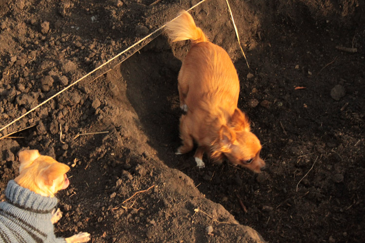девочки, спасибо)))) на фотке они в ямку заглядывают, на даче там для чего то вырыли - не знаю))))) ямка не глубокая, вот они вокруг нее кружили - любопытно же, что там и Фенька в нее таки влез и победно ее пометил и давай носиться по участку от радости, что покорил такую страшную яму, а Гибсик сверху смотрел, но спуститься не решился))))))