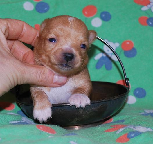Елен, Фенька родился очень ярким, а потом оброс светлой щенячьей шерсткой, которую потом сбросил, снова стал рыжим
