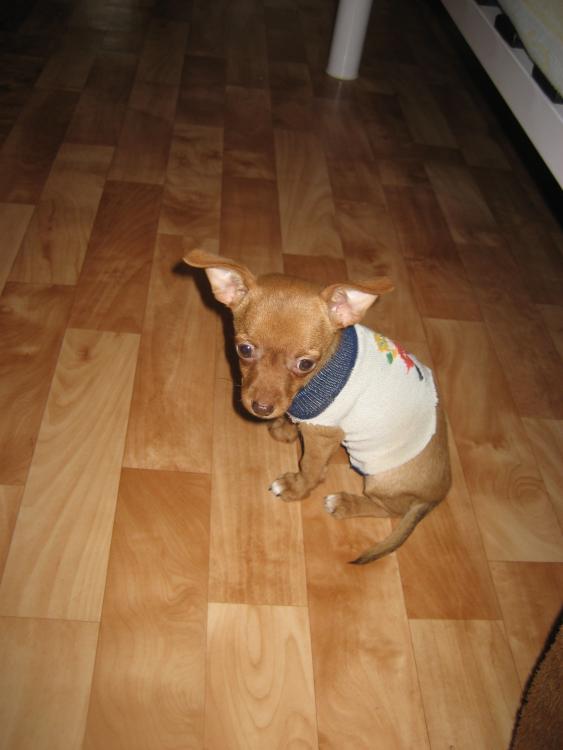 потихоньку привыкаем к одежде, шлейке и поводочку:gold:
