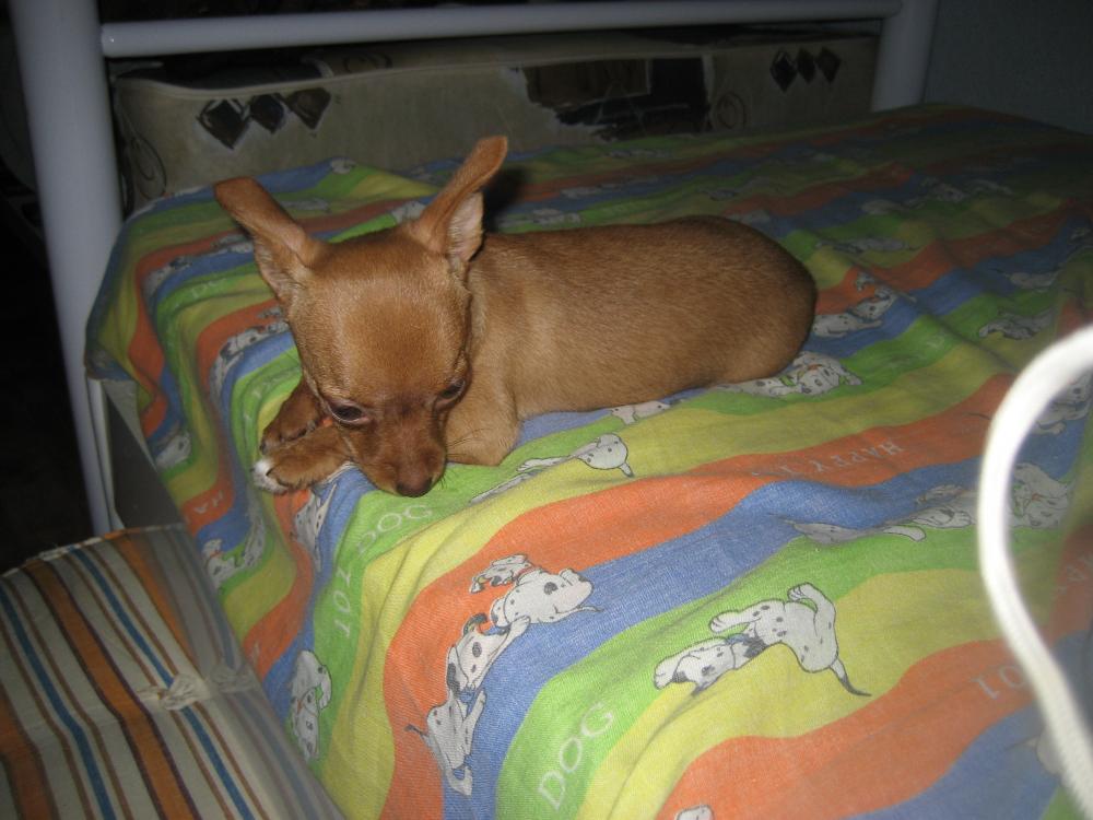 ну точнее это я легла спать...а она надеялась видимо поиграть ещё))то кость погрызёт то ко мне подойдёт залижет до обморока))и так раза три))