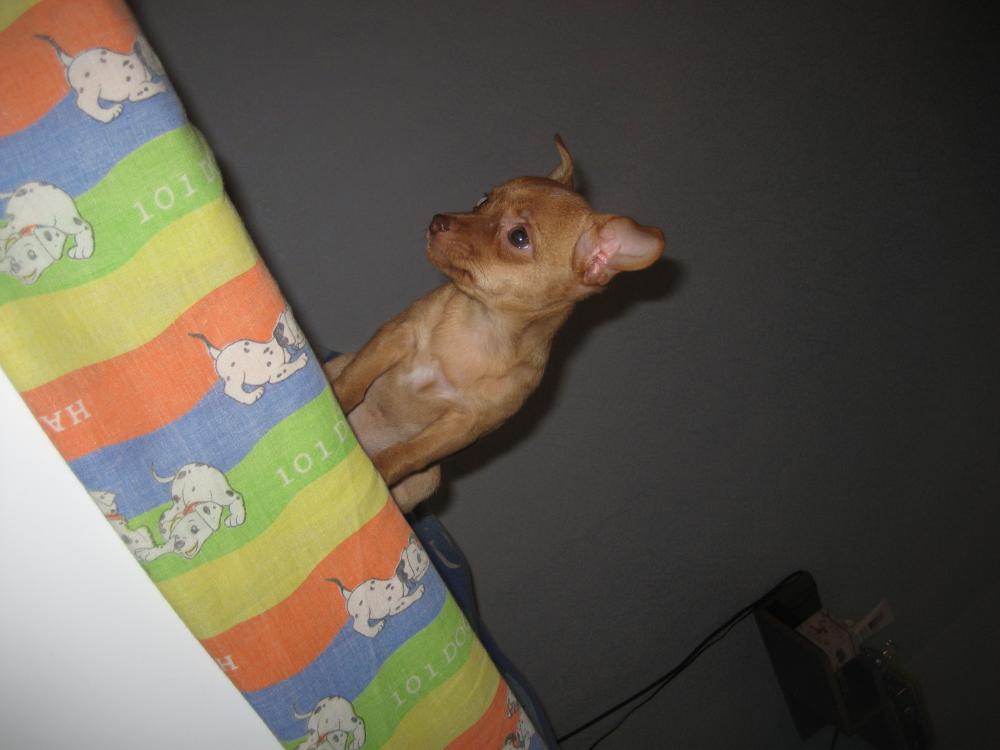 перетащила её на место похвалила..всё как надо в общем...так она всё равно ко мне))убрала я то что способствовало ей при прыжке и начался кошмар(((она бегала вдоль кровать скулила скулила...ставила лапки на кровать...даже пыталась прыгнуть!!!но не получилось