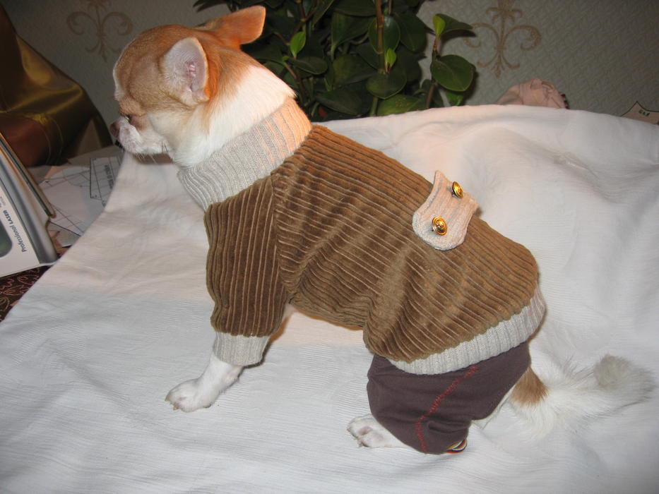 У немножко утеплились. Так как у Тани много заказов, а на улице похолодало, ходить нам стало не в чем. Пришлось мне вспомнить молодость и сотворить теплую куртёнку из подсобных материалов, дочкиного свитера и залежавшегося вельвета.
