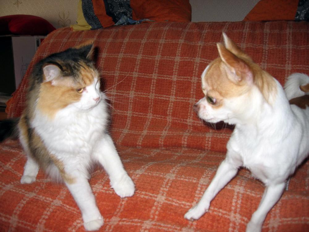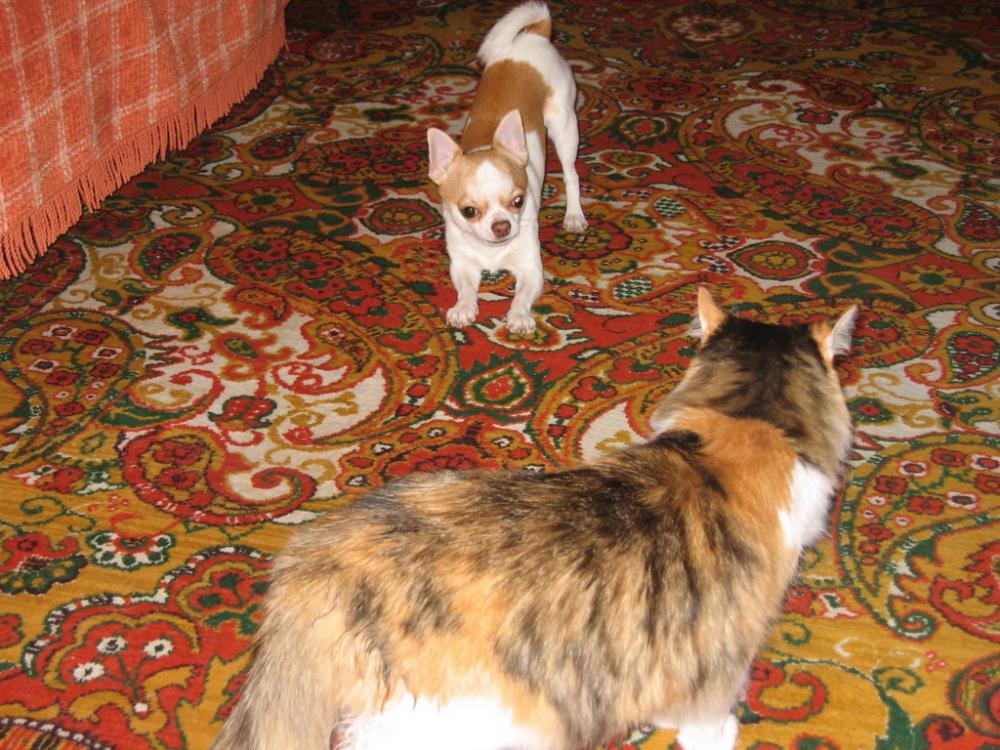 Ирина Л., еще как , он ей Гав она ему Мяу:smile: Вот только играть она никак не хочет... а иногда зазывает в свое гнездо, как котенка, но ему бы только скакать. Она дама почтенного возраста, 16 лет ей, какие уж тут игры, но погонять его иногда может,