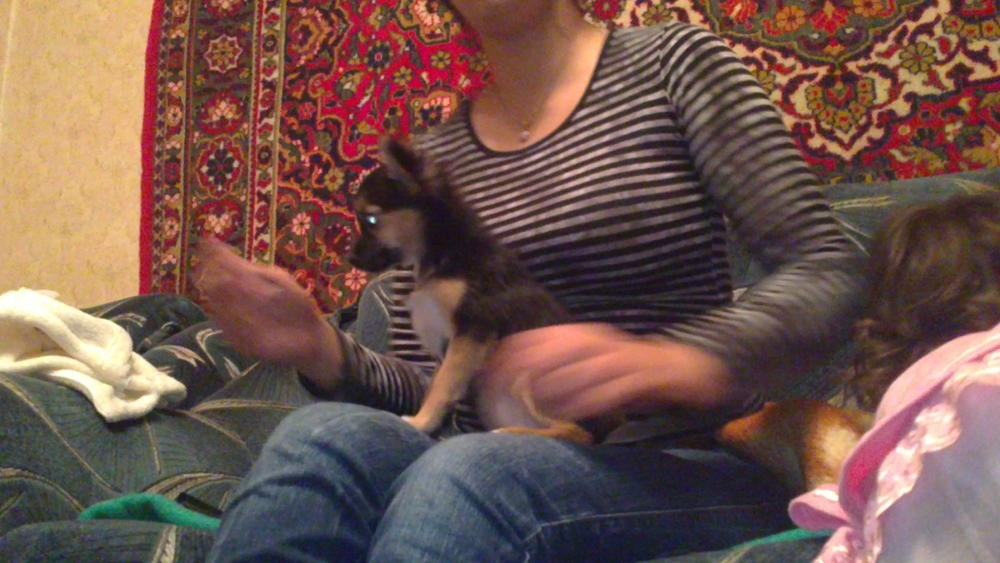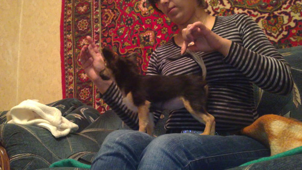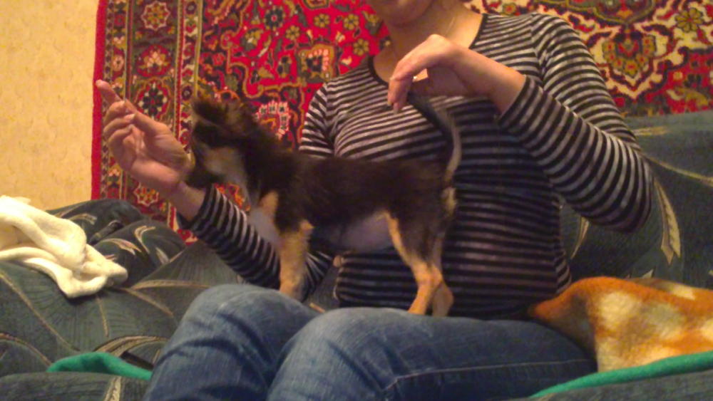 На выставки мы тоже не претендуем, собственно как и на разведение и т.п., Ляля сейчас растет не очень симметрично, зад кажется выше головы немного:laughing:, по характеру Ляля как кошка, иногда ласковая, а иногда прям пантера, уже пытается "охранять" и "защищать", в еде не привередливая ест натуральную пищу, и очень сильный "пищевик" за еду продаст всех и все. В свои 4 месяца в холке 16,5 см, вес не знаем точно, т.к. она все время крутится и не сидит на весах, приблизительно около 1кг. Сейчас начала шерсть расти длиннее на хвосте и ушках, ну и по всему телу. Вот собственно и все пока.:wink: