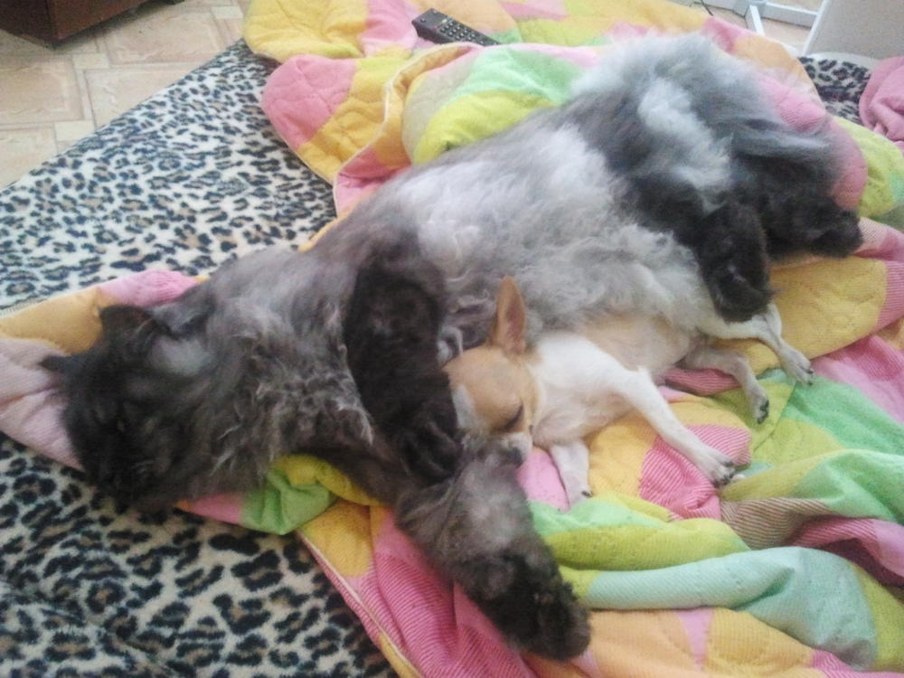 (((( Боссик проснулся и АШАЛЕЛ! глазенки выпучил и давай от Лакки пятиться..., а муж смеется и говорит Боссику-"Теперь тебе не отвертеться, у нас есть фотофакты вашей любви!")))