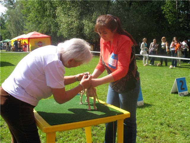 Нам тоже безумно понравилось. Оказывается, так много отзывчивых людей, которые с удовольствием дают полезные советы. Отдельное спасибо Татьяне, показала, рассказала, шикарная у нее девочка, очень понравилась. Судья нам сказал, что у Фифи есть шансы, мелочь, а приятно конечно. Очень много чишек, такие красавцы. Я первый раз вообще видела столько красивых гладкошерстных чихов, была приятно удивлена.:smile: Фифи с Гланей тоже море эмоций получили от такого количества собак, под конец вели себе так спокойно, будто всю жизнь провели на выставках. :grinning: А мы с Ингой мило так пообщались, посмотрели аджилити, прочувствовали атмосферу, одним словом. Обязательно еще приедем,надеюсь, что и в качестве участников.:smile: Обязательно завтра выложу фотки.