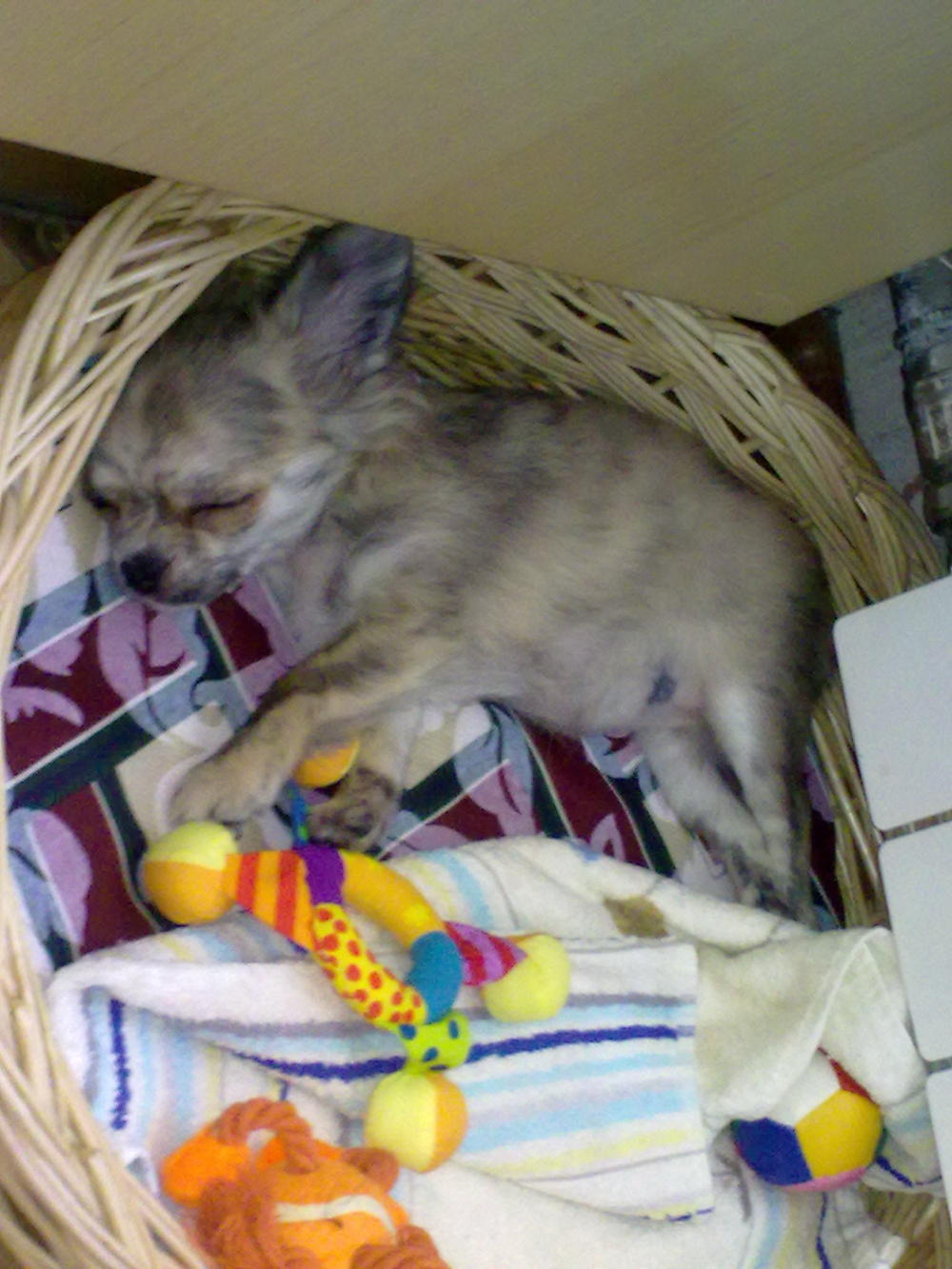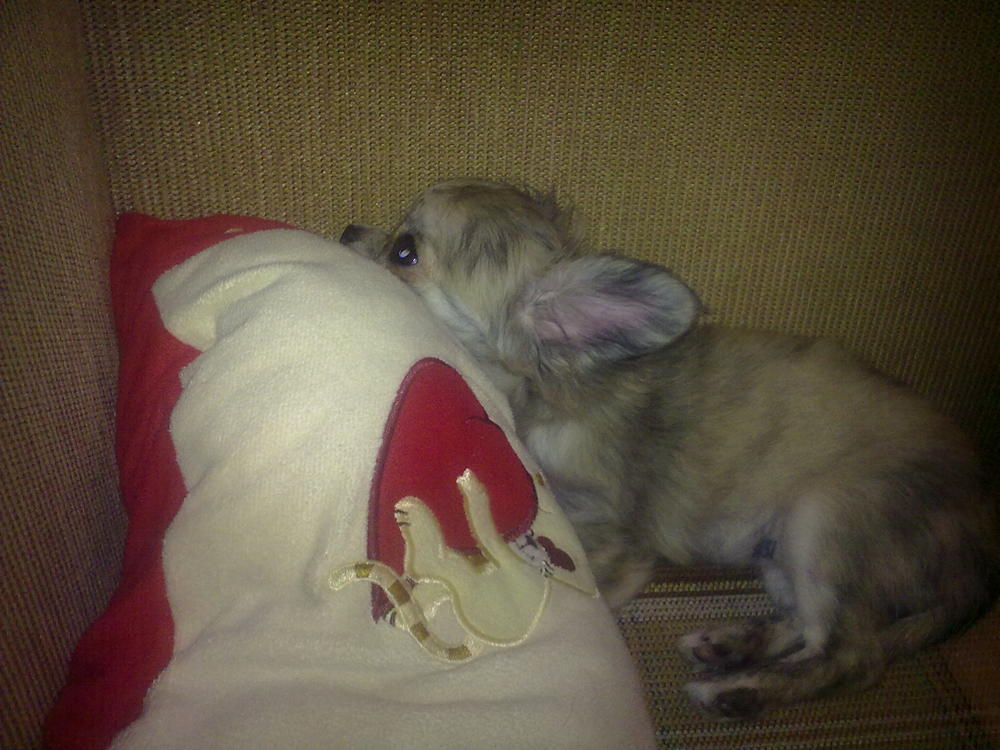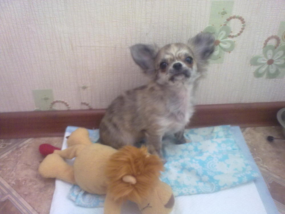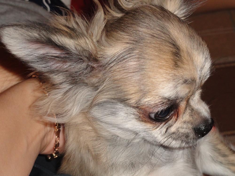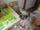 А вообще у нас очень *пестрая* голова=) и между глаз полосочки...поэтому на фотках кажется что она все время хмурится.... вот такие мы были в 6 месяцев, сидим на даче в клумбе....жарко....