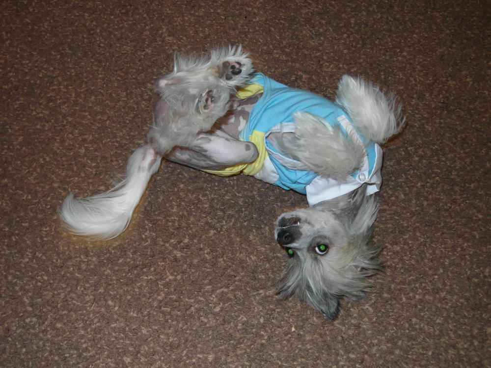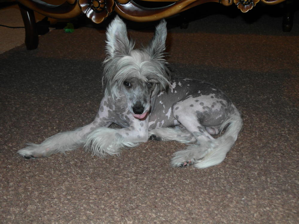 Всем здрасти!!! Вот мой парень - я взяла его 2 дня назад. Он подросточек - 9,5 месяцев, вес 2,2 кг. Робкий лизун (правда, по отношению к моему голому китайцу не робок совершенно - рычит по делу на него и без). Ломаю голову как бы назвать - по родухе он Лукреций Кар, а в питомнике его звали Витёк (ну уж Витьком он точно у меня не будет:laughing:). Думаю, какое-нибудь имя на Л (перебирали с мужем варианты Лёлик, Лунтик, Луи, Лисёнок, Луша - либо мужу не нравится, либо мне). Да... и проблемка - метит ножки и углы, за это время из-за плохой погоды выводила гулять один раз - так он лёг и лежит (на мокрой-то траве), так что пока ходим на пелёнку, стараемся не промахиваться, но вот метка территории, это же из-за того, что дома ещё кобелёк есть, да и дама к нам часто соседская заглядывает.