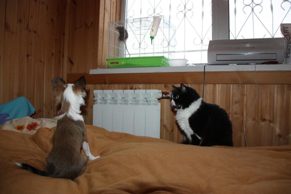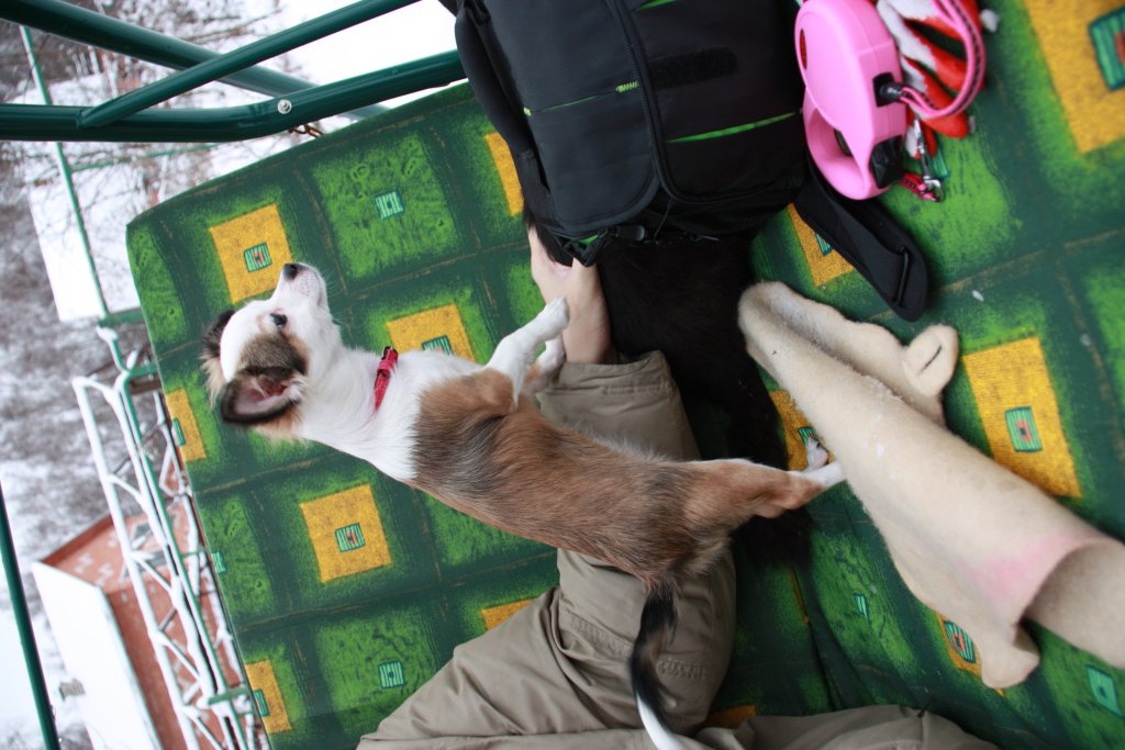Кэтти, ну на самом деле она тоже мерзнет, посидит погреется и опять носится, сама в дом забегает отогреется и обратно просится...хулиганка такая, там же кошки бегают дворовые, вот ей и нравится за ними бегать(дома на кошке Касе натренировалась)