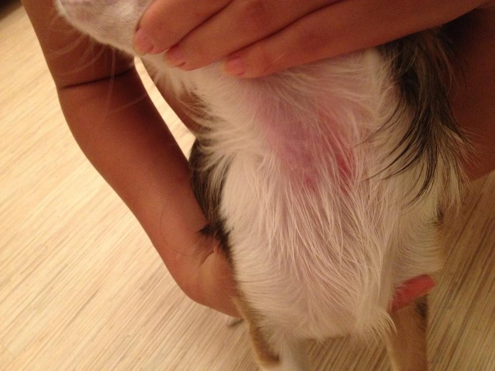 ошейник против блох сняли, и покраснение прошло, зарастаем новой шёрсткой:smile: